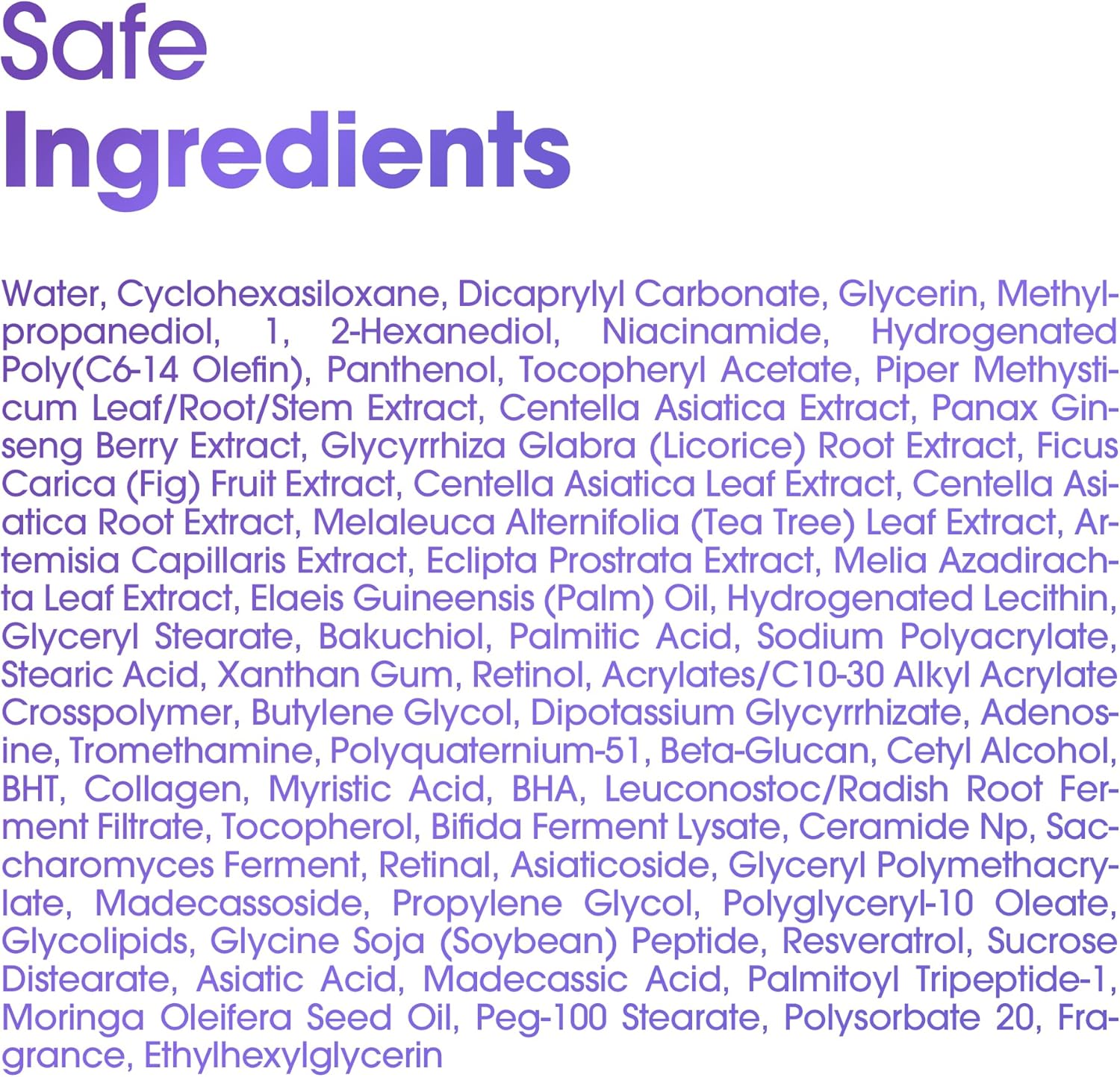 Retinol (0.1%) + Retinal (1 ppm)+ Bakuchiol (5,000 ppm),Centella Asiatica & Panthenol, Ceramide NP, Niacinamide